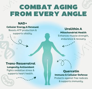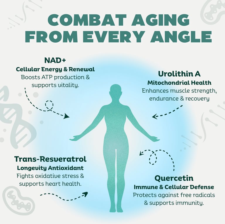 The Power of Synergy – Why We Combined NAD+ with Urolithin A, Resveratrol, and Quercetin